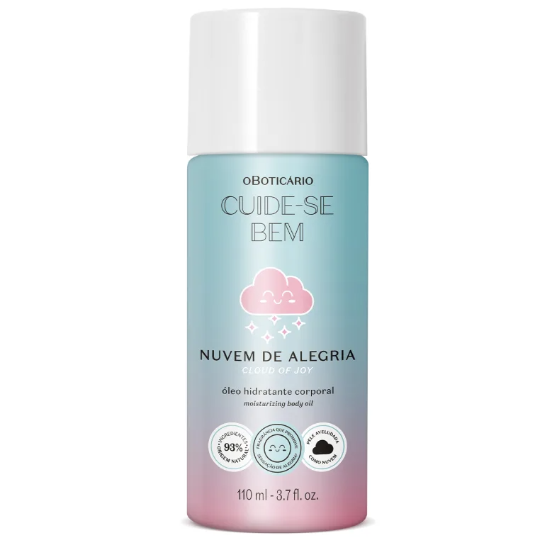 Prepare-se para uma experiência sensorial única e eleve seu astral com o inovador Óleo Desodorante Hidratante Corporal Cuide-se Bem Nuvem de Alegria! Com 110ml, este é o primeiro e único óleo corporal de Cuide-se Bem O Boticário, criado para envolver sua pele em uma camada de hidratação e bem-estar.